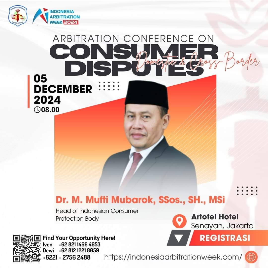 Kami dengan bangga mempersembahkan Arbitration Conference on Domestic & Cross-Border Consumer Disputes, sebuah forum penting yang membahas tantangan dan solusi dalam penyelesaian sengketa konsumen di dalam dan lintas batas negara.