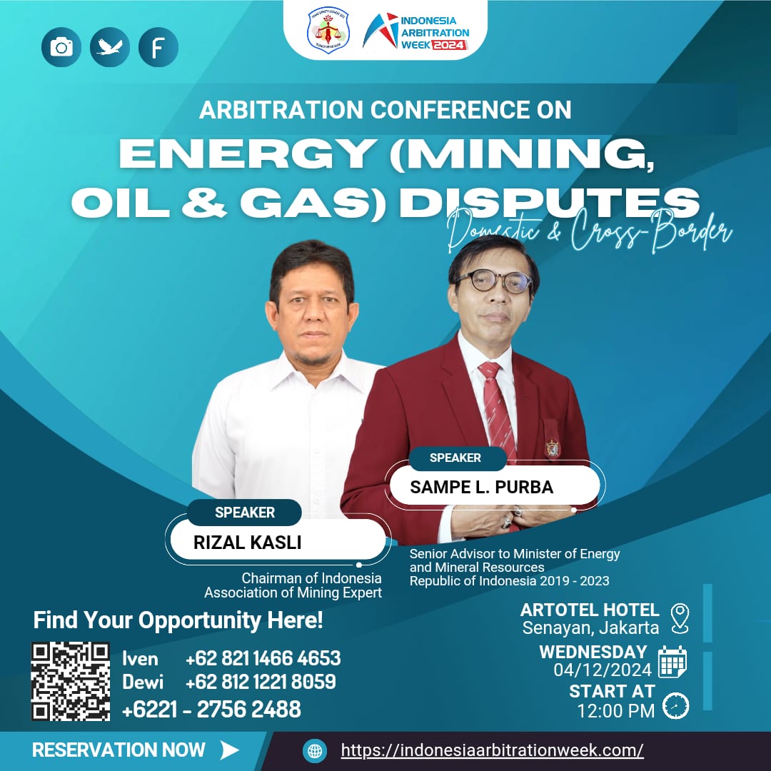 Kami dengan bangga mengundang Anda untuk menghadiri Arbitration Conference on Mining & Energy (Oil & Gas) Disputes, sebuah forum penting yang membahas penyelesaian sengketa dalam sektor pertambangan dan energi, khususnya minyak dan gas.
