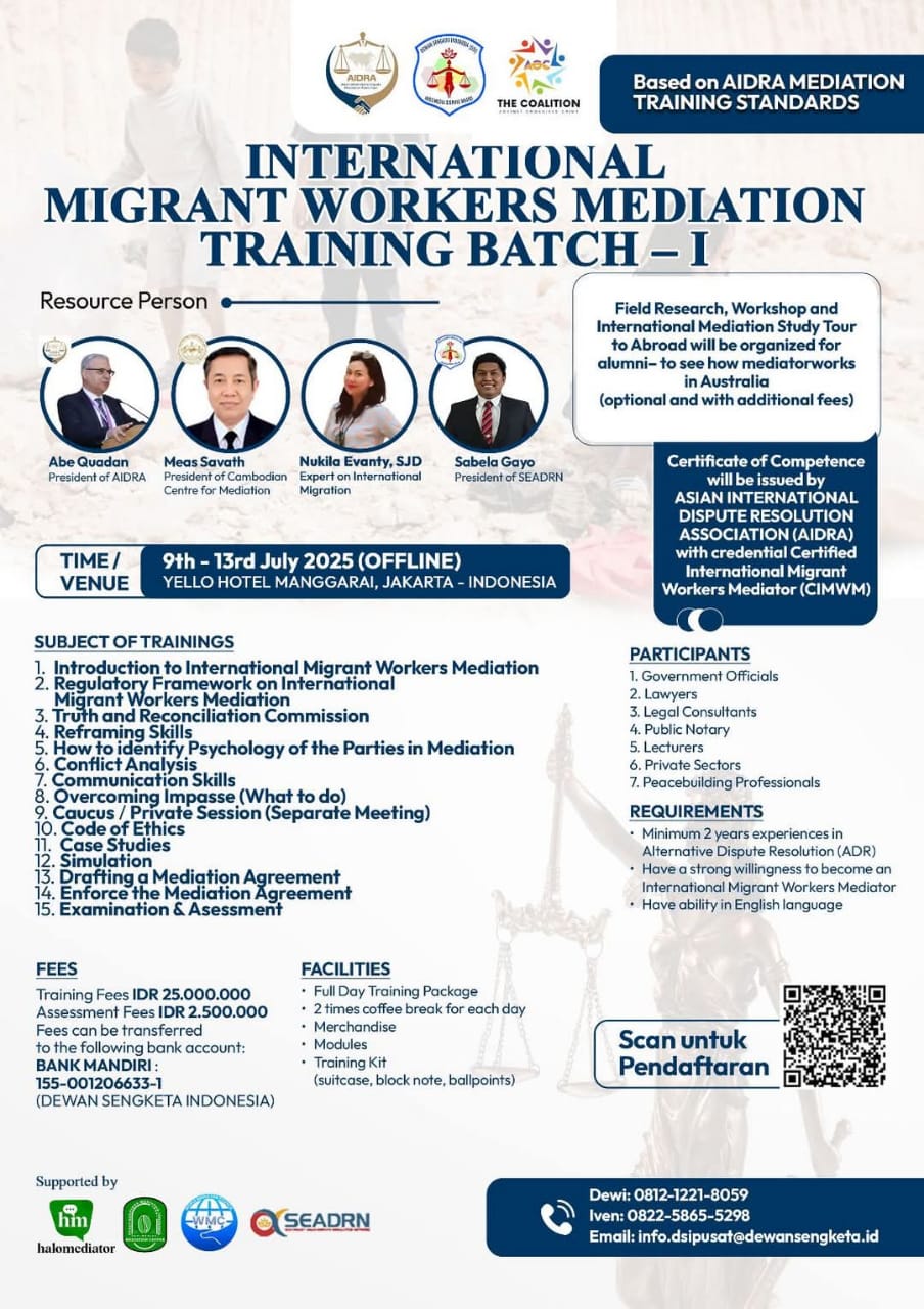 Segera daftarkan diri Anda untuk mengikuti pelatihan offline mengenai mediasi masyarakat adat dan industri ekstraktif internasional, yang diselenggarakan dalam bahasa Inggris. Pelatihan ini akan memberikan pengetahuan dan keterampilan dalam menyelesaikan sengketa yang melibatkan masyarakat adat serta sektor industri ekstraktif.
