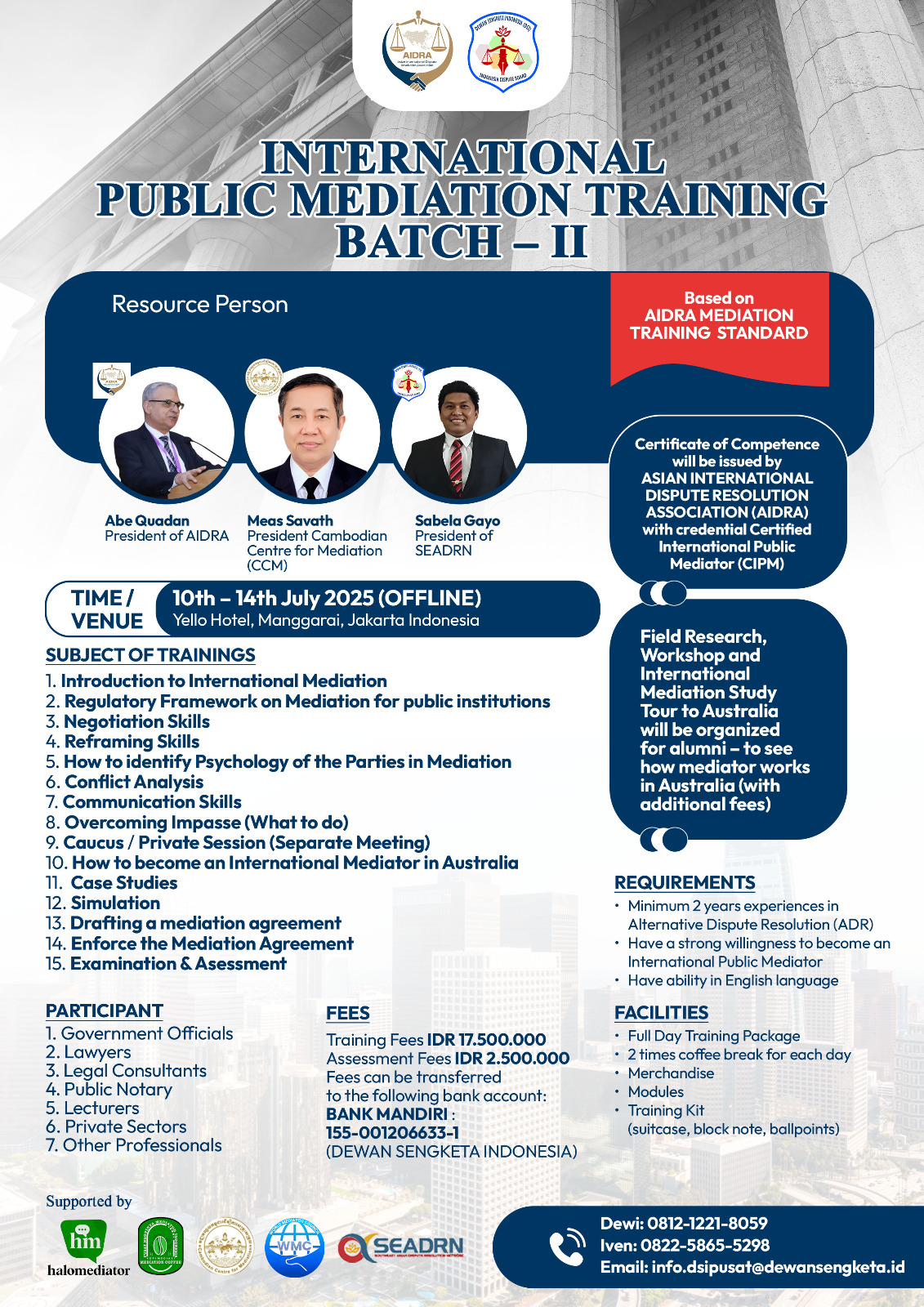 Jangan lewatkan kesempatan ini untuk memperdalam keterampilan Anda dalam mediasi publik internasional!