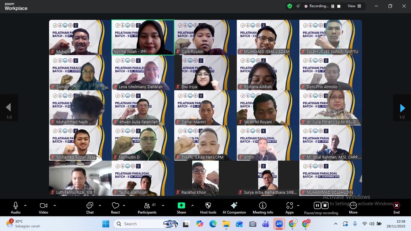 DAY 1 – PELATIHAN PARALEGAL BATCH 2 RESMI DIMULAI