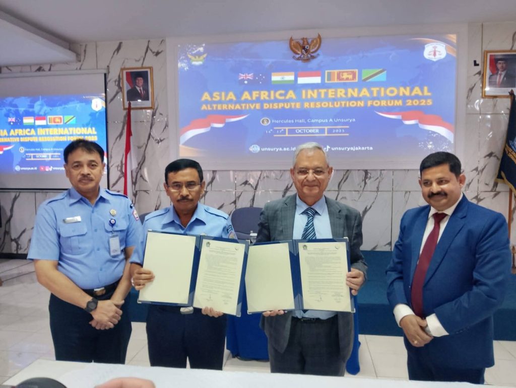 Dalam kesempatan tersebut, dilakukan penandatanganan Nota Kesepahaman (MoU) antara Dewan Sengketa Indonesia (DSI), Universitas Dirgantara Marsekal Suryadarma (UNSURYA), dan India International Arbitration Center (IIAC).