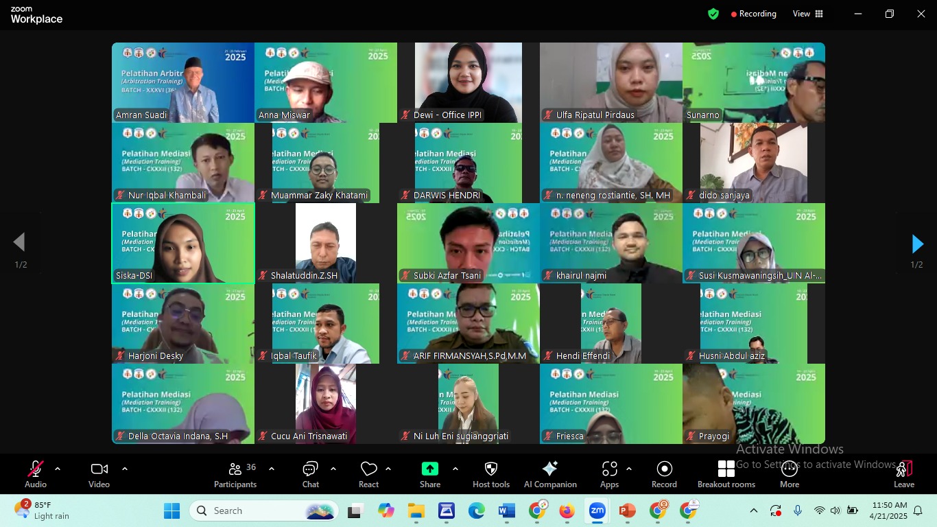 Dengan format pelatihan daring, kegiatan ini diikuti oleh peserta dari berbagai wilayah, menunjukkan antusiasme tinggi terhadap pengembangan kapasitas di bidang penyelesaian sengketa alternatif (ADR).