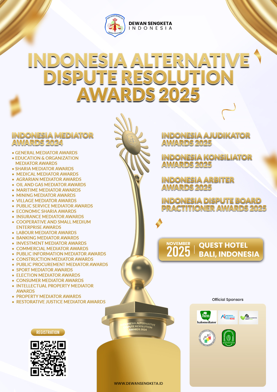 Puncak penghargaan nasional bagi para mediator, arbiter, ajudikator, konsiliator, dan praktisi dispute board terbaik dari seluruh Indonesia.