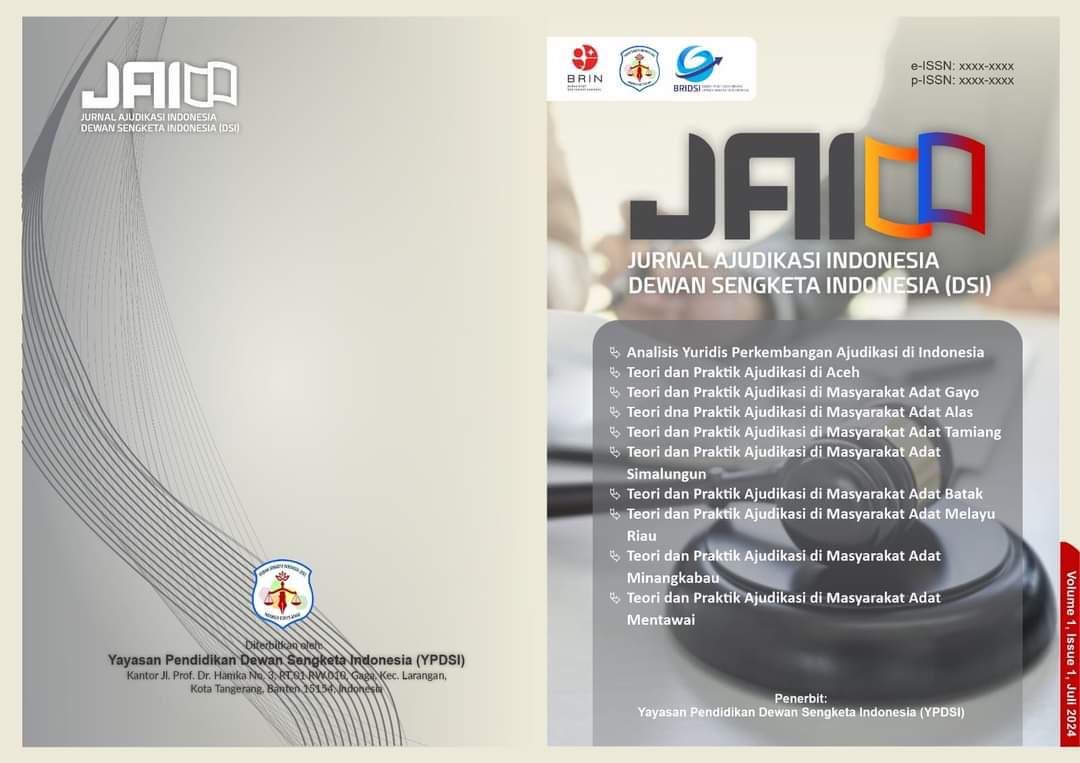Jurnal Ajudikasi Indonesia (JAID) diterbitkan oleh Yayasan Pendidikan Dewan Sengketa Indonesia (YPDSI) sebagai upaya untuk mengembangkan kajian ilmiah mengenai praktik dan teori dalam adjudikasi di berbagai masyarakat adat di Indonesia. Edisi perdana ini mencakup berbagai topik yang relevan dengan perkembangan adjudikasi di tanah air, termasuk analisis yuridis mengenai perkembangan adjudikasi di Indonesia dan penerapannya di berbagai daerah adat seperti Aceh, Gayo, Alas, Tamiang, Simalungun, Batak, Melayu Riau, Minangkabau, dan Mentawai. Dengan dukungan dari Badan Riset dan Inovasi Nasional (BRIN) dan Badan Riset dan Inovasi Daerah (BRIDS), jurnal ini diharapkan dapat menjadi referensi penting bagi akademisi, praktisi hukum, serta pemangku kepentingan lainnya dalam memahami dan mengembangkan sistem adjudikasi di Indonesia.