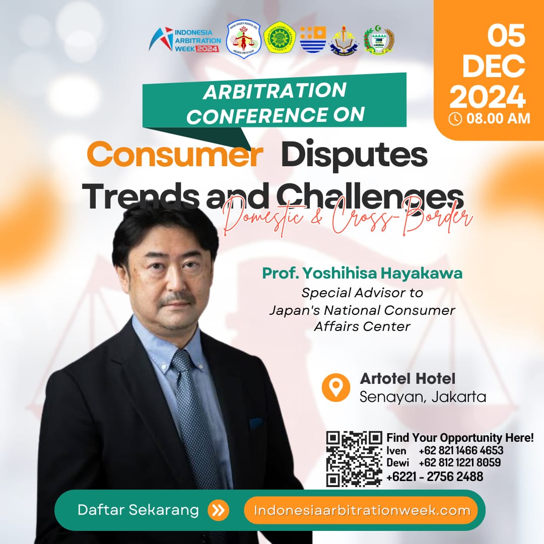 Jakarta, 5 Desember 2024 – Arbitration Conference on Consumer Disputes: Trends and Challenges (Domestic & Cross Border) akan digelar di Artotel Hotel, Senayan, Jakarta, pada Kamis, 5 Desember 2024. Acara ini dimulai pukul 08.00 pagi dan dirancang sebagai forum diskusi mendalam mengenai tren serta tantangan dalam penyelesaian sengketa konsumen, baik di tingkat domestik maupun lintas negara.