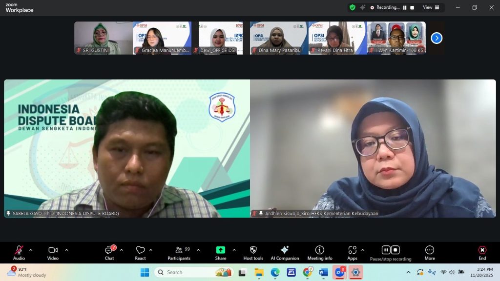 Dewan Sengketa Indonesia (DSI) kembali menyelenggarakan OPSI (Obrolan Penyelesaian Sengketa Indonesia) dengan mengangkat tema “Peran Mediasi dalam Menumbuhkan Budaya Perdamaian di Indonesia.” Kegiatan ini bertujuan memperkuat pemahaman publik mengenai pentingnya mediasi sebagai instrumen penyelesaian sengketa yang efektif, berkeadilan, dan berorientasi pada perdamaian.