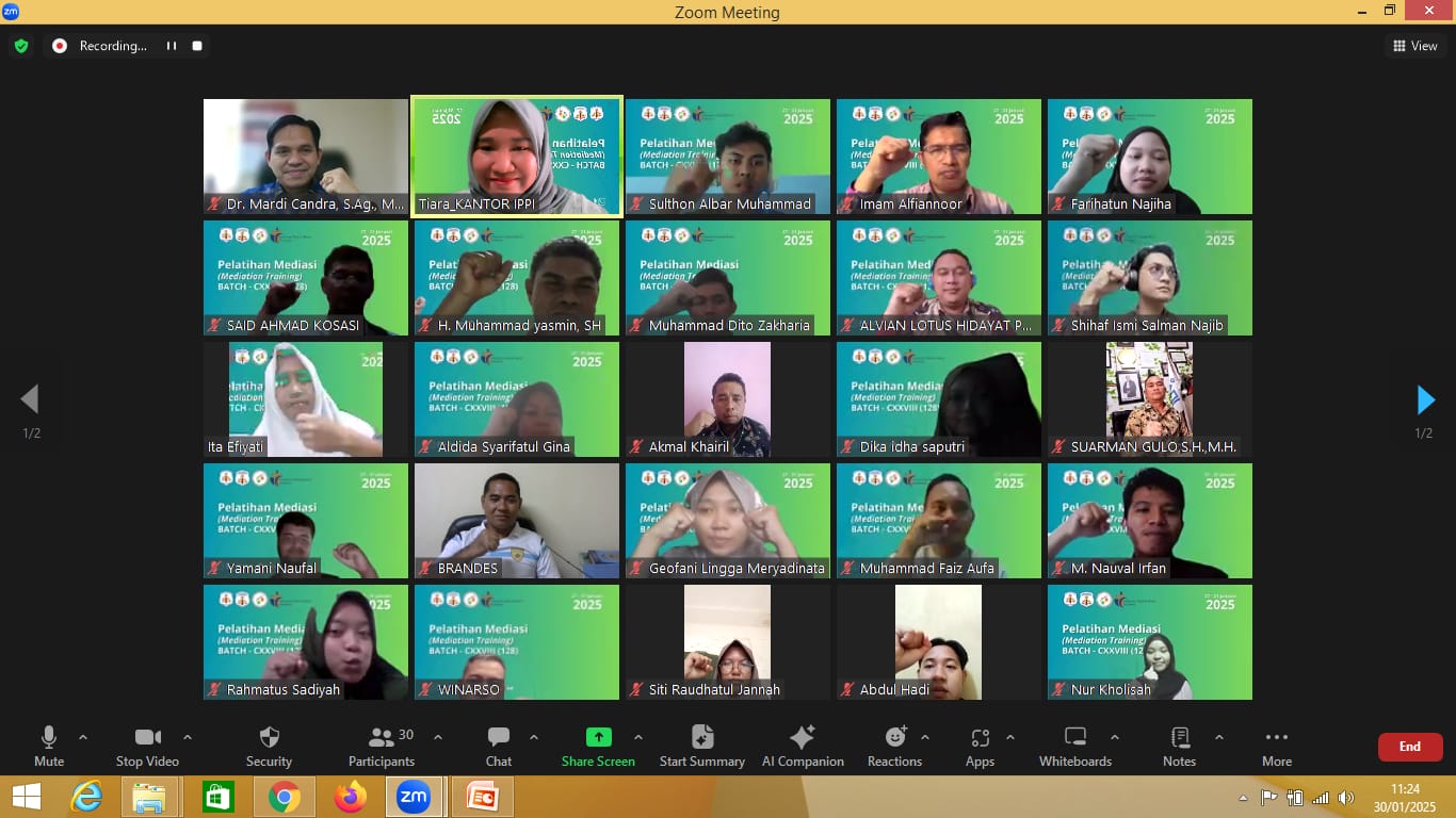 Pelatihan ini terus mendapatkan respons positif dari para peserta yang berkomitmen untuk memperdalam pemahaman mereka dalam dunia mediasi. Dengan materi yang semakin kompleks dan interaktif, pelatihan ini diharapkan dapat mencetak mediator yang profesional dan kompeten di bidangnya.