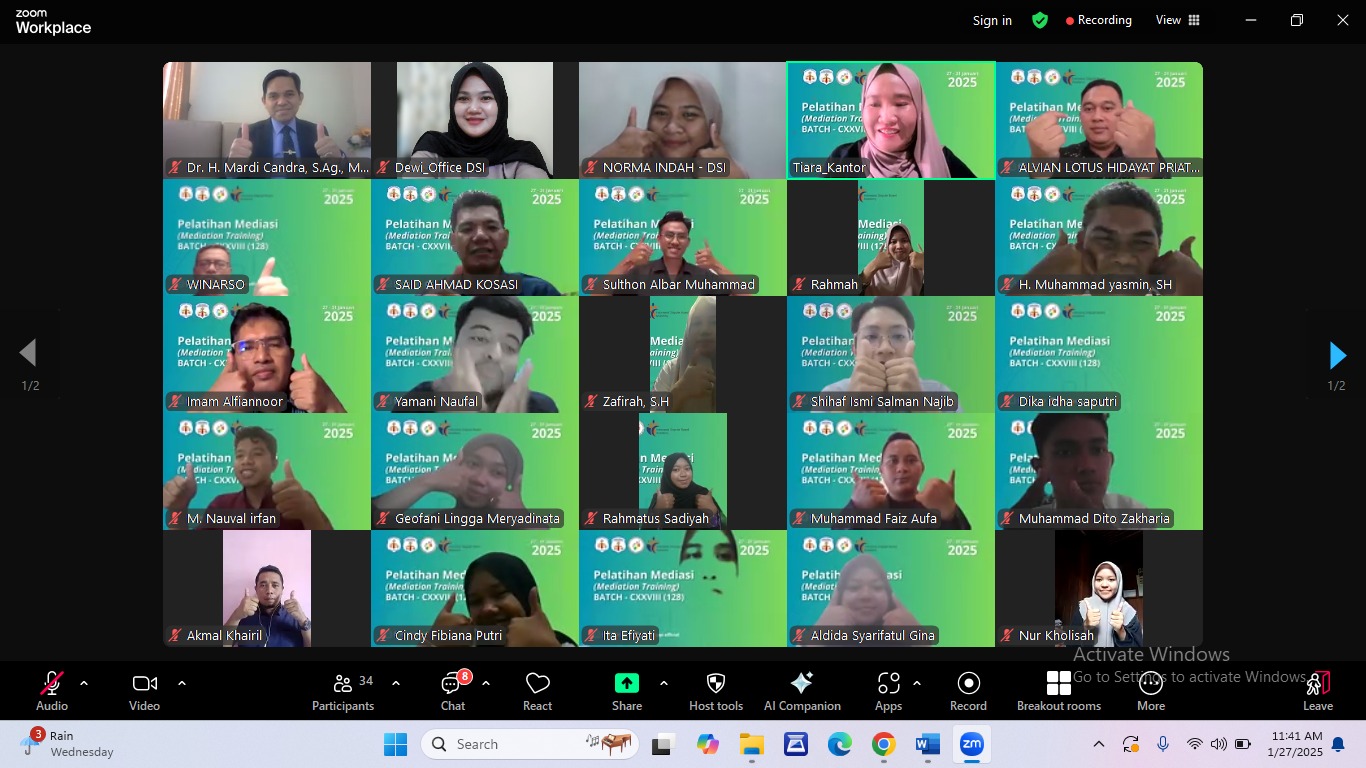 Hari pertama pelatihan, yang diselenggarakan pada Senin, 27 Januari 2025, menghadirkan narasumber Dr. Mardi Candra, S.Ag., M.Ag., M.H., CPM, seorang Trainer TOT dari Mahkamah Agung Republik Indonesia. Dalam sesi ini, peserta mendapatkan wawasan mendalam mengenai praktik mediasi sebagai solusi penyelesaian sengketa yang efektif dan efisien.