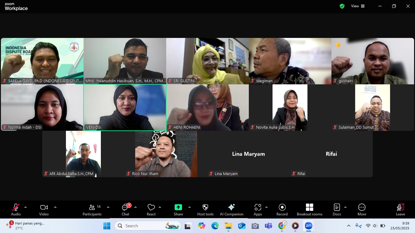 Jum’at, 23 Mei 2025 – Dewan Pimpinan Pusat Asosiasi Pemerhati dan Peneliti Hukum Indonesia (APPHI) bersama Dewan Sengketa Indonesia (DSI) secara resmi melakukan penandatanganan Nota Kesepahaman (MoU). Acara ini berlangsung secara daring dengan dihadiri oleh para pengurus dan anggota kedua organisasi yang terlihat antusias dan penuh semangat.