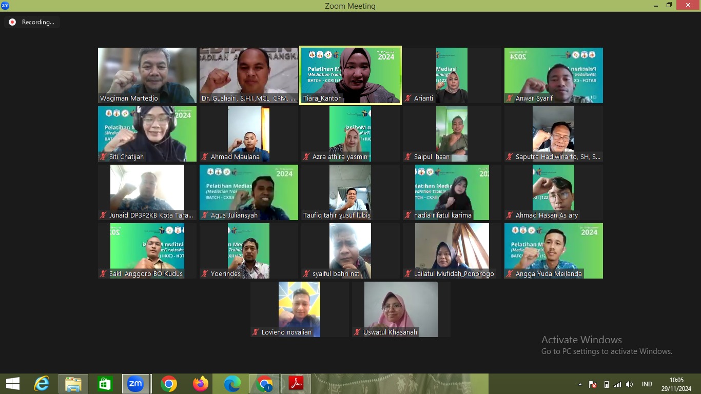 - Peningkatan Kompetensi Lanjutan untuk Mediator Bersertifikat.