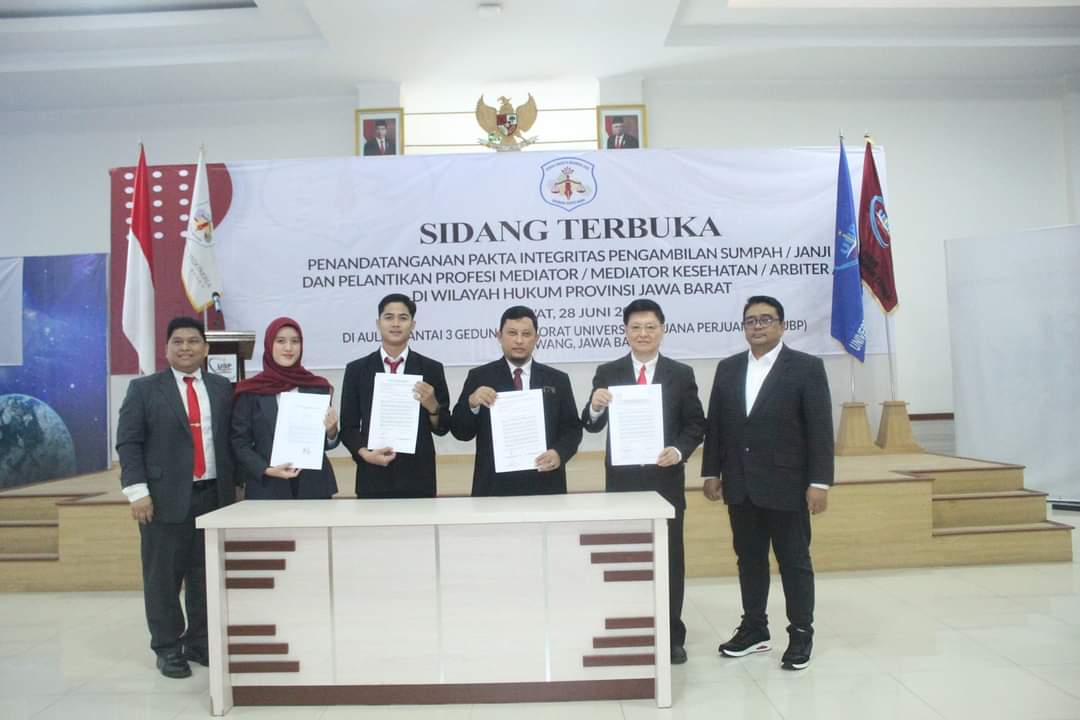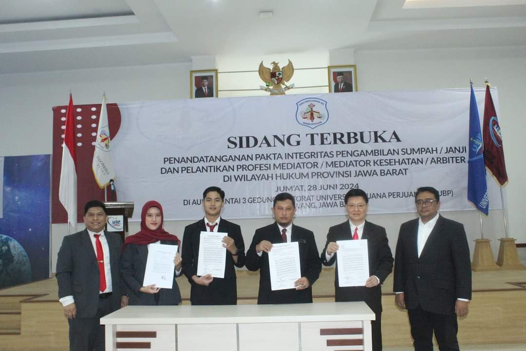 Pada hari Jumat, 28 Juni 2024, Gedung 1 Lantai 3 Rektorat Universitas Buana Perjuangan (UBP) Karawang, Jawa Barat, menjadi saksi dari Sidang Terbuka ke-52. Acara tersebut menggelar Pengambilan Sumpah / Janji Profesi Mediator, Mediator Kesehatan, dan Arbiter, diikuti dengan Penandatanganan Pakta Integritas dan Pelantikan Profesi. Acara ini dihadiri oleh 42 peserta yang akan mengucapkan sumpah atau janji mereka sebagai mediator dan arbiter.
