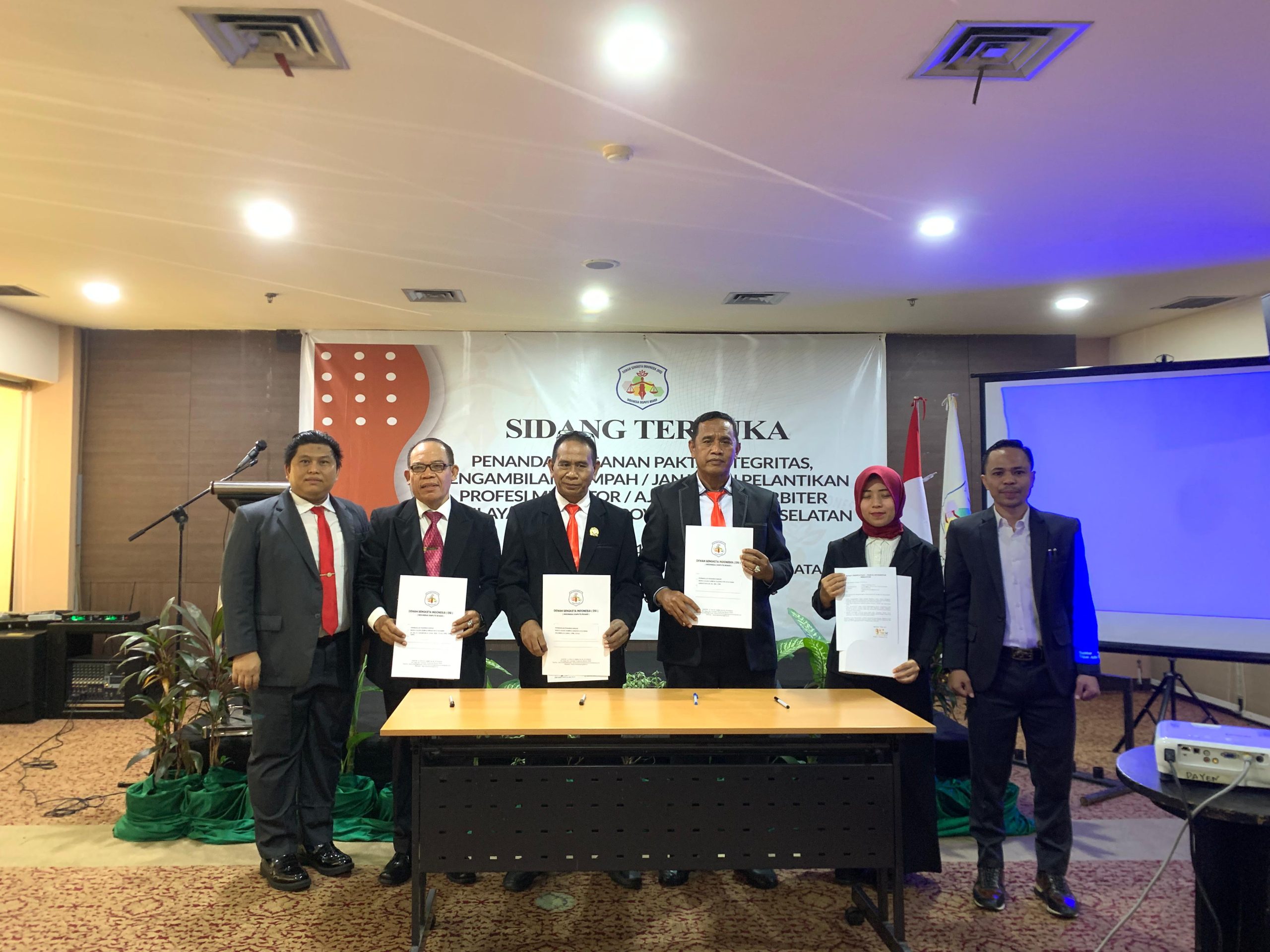 Sidang Terbuka ini diawali dengan pembukaan resmi, dilanjutkan dengan Pengambilan Sumpah/Janji bagi 14 (empat belas) peserta sebagai tanda pengukuhan profesi mereka. Selain itu, dilakukan pula penandatanganan Nota Kesepahaman yang diwakili oleh beberapa peserta mediator, ajudikator, dan arbiter sebagai komitmen bersama untuk menjaga integritas dan profesionalisme dalam menjalankan tugas penyelesaian sengketa.