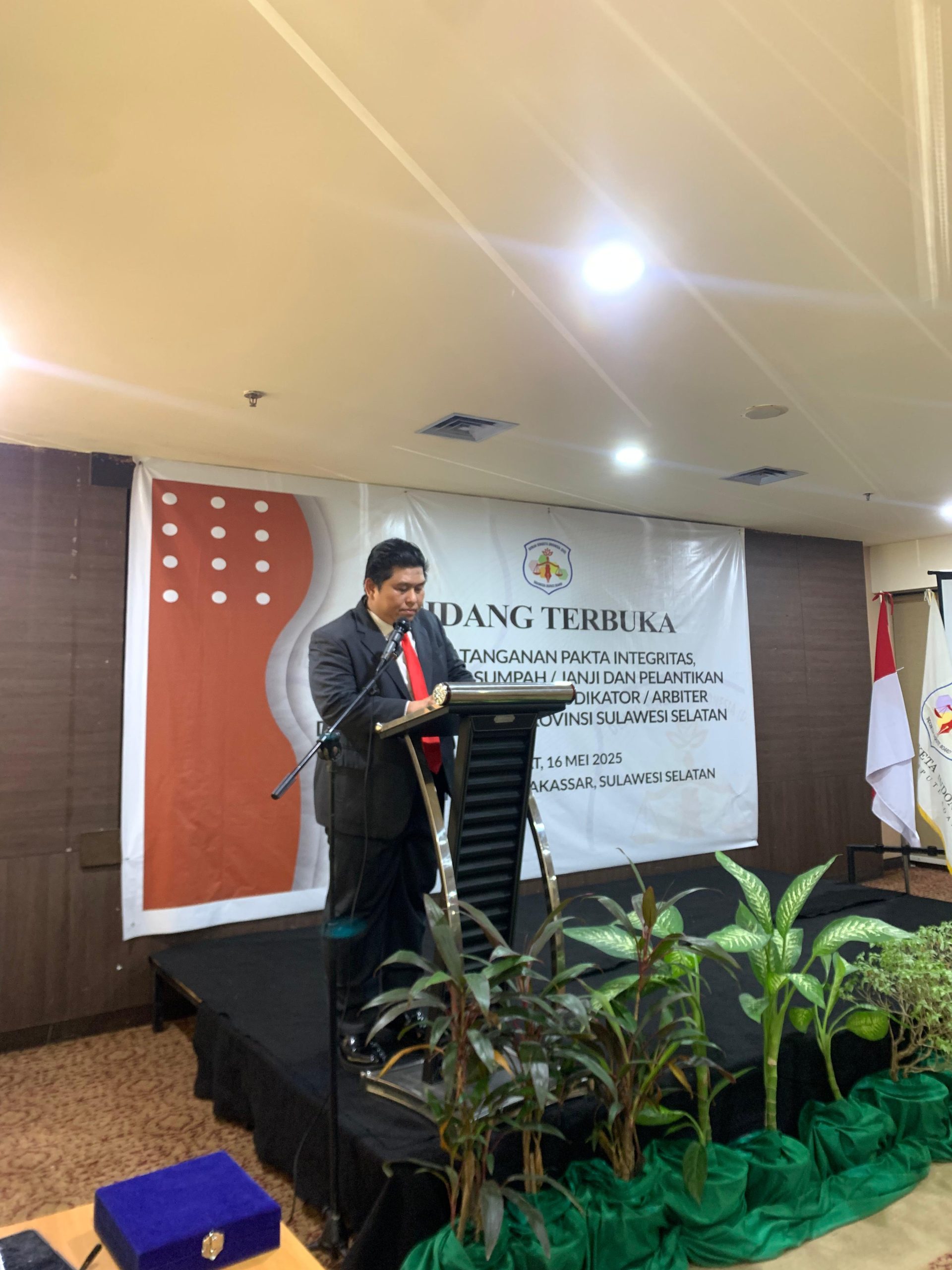 Makassar, 16 Mei 2025 — Dewan Sengketa Indonesia (DSI) sukses menyelenggarakan Sidang Terbuka ke-68 yang diisi dengan Pengambilan Sumpah/Janji dan Pelantikan Profesi Mediator, Ajudikator, dan Arbiter di wilayah hukum Provinsi Sulawesi Selatan. Acara berlangsung pada hari Jumat, 16 Mei 2025, bertempat di Hotel Horison Ultima, Makassar.