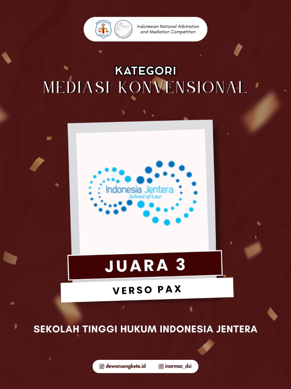 Verso Pax Sekolah Tingi Hukum Indonesia Jentera Raih Juara 3 Kategori Mediasi Konvensional